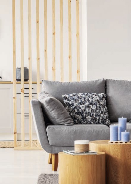 Pionowo ułożone drewniane lub drewnopodobne szczebliny są aktualnie wnętrzarskim hitem. Pojedyncze lamele mają przeciętnie szerokość 5-6 cm. Odstępy między listewkami w panelach muszą być czytelne, więc często odpowiadają grubości lameli – wynoszą najczęściej 2-3 cm. Lamele mogą mieć też bardzo luźny rozstaw, ale dotyczy to raczej grubych elementów. Szczebliny mogą tworzyć konstrukcje ażurowe – wówczas stosuje się je w formie przepierzeń oraz ścianek oddzielających aneksy i zakątki wnętrza. Producenci sprzedają lamele w postaci pojedynczych listew do naklejania na ścianę lub w formie gotowych do użycia konstrukcji. Lamele są wtedy w regularnych odstępach przymocowane do płyty, którą montuje się na ścianie – to tzw. panele lamelowe lub ryflowane panele ścienne. Wykonuje się je z różnych rodzajów drewna, zarówno rodzimego, jak i egzotycznego, co umożliwia uzyskanie okładzin w bogatej palecie kolorów oraz unikatowych wzorach usłojenia.