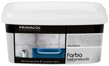 Farba betonowa Primacol Decorative to dekoracyjna farba mineralna przeznaczona do stosowania wewnątrz pomieszczeń. Przy jej wykorzystaniu, w zależności od oczekiwań i sposobu aplikacji, można stworzyć strukturę z atrakcyjnymi wżerami i ubytkami, otrzymać efekt gładkiej, błyszczącej ściany z betonu wibrowanego lub też wykonać ciekawą imitację płyt z betonu architektonicznego. Produkt jest gotowy do użytku bezpośrednio po otwarciu opakowania, wymaga jedynie wymieszania. Farbę należy nanosić za pomocą wałka malarskiego na odpowiednio przygotowane podłoże, które powinno być suche, twarde i pozbawione zabrudzeń oraz zagruntowane przy pomocy preparatu Kontakt grunt Primacol Decorative. Ze względu na szybki czas schnięcia, jednorazowo należy malować ograniczone przestrzenie, najlepiej do 1 m2. Produkt można stosować na tynki cementowe i cementowo-wapienne, a po odpowiednim przygotowaniu podłoża również na płyty gipsowo-kartonowe.