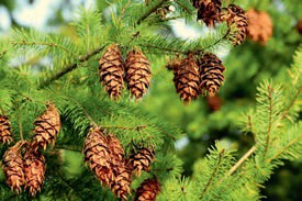 Piękno iglaków to nie tylko gęsta, strzępiasta forma, to również niezwykle dekoracyjne szczególnie u niektórych odmian owoce – czyli szyszki. Ich różne kształty, wielkość i kolory sprawiają, że „choinka” nabiera dodatkowego ozdobnego waloru. Szczególnie jesienny, nieco przemijający, a potem zimowy ogród właśnie dzięki szyszkom może przełamywać nudę. Warto zatem dobierając do ogrodu iglaki, zwrócić uwagę na tę właściwość. Wyjątkowo piękne szyszki, ze względu na ich pionowe przyrastanie tworzą np. jodły.