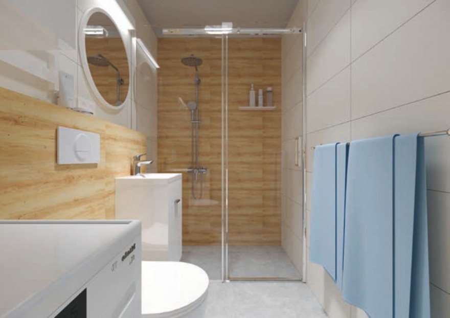- Przeniesienie grzejnika w łazience na miejsce obok poprawiło warunki aranżacyjne.