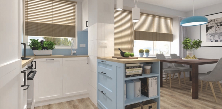 - Dzięki połączeniu kuchni z pokojem można było zlikwidować grzejnik w kuchni.