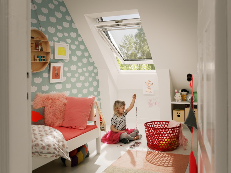 Na każdym poddaszu znajdują się pomieszczenia, w których światło dzienne jest niezbędne np. gabinet czy pokój dzieci. W tych wnętrzach idealnie sprawdzą się tradycyjne markizy przeciwsłoneczne VELUX. Skutecznie ochronią przed upałem, zatrzymują ciepło na zewnątrz, nie zasłaniając przy tym widoku za oknem. Wykonane są z tkaniny w formie siateczki, dzięki czemu delikatnie przepuszczają światło dzienne i utrzymują przyjemnie jasne pomieszczenie, idealne do nauki lub pracy. W zależności od potrzeb możemy wybrać markizę manualną lub zasilaną energią elektryczną lub solarną, które obsługuje się za pomocą przycisku naściennego. Markizy solarne i manualne nie wymagają żadnego okablowania i są gotowe do użycia natychmiast po zainstalowaniu. Zimą, gdy nie potrzebujemy już osłony przed słońcem, zwinięta markiza jest estetycznie ukryta w kasetonie.